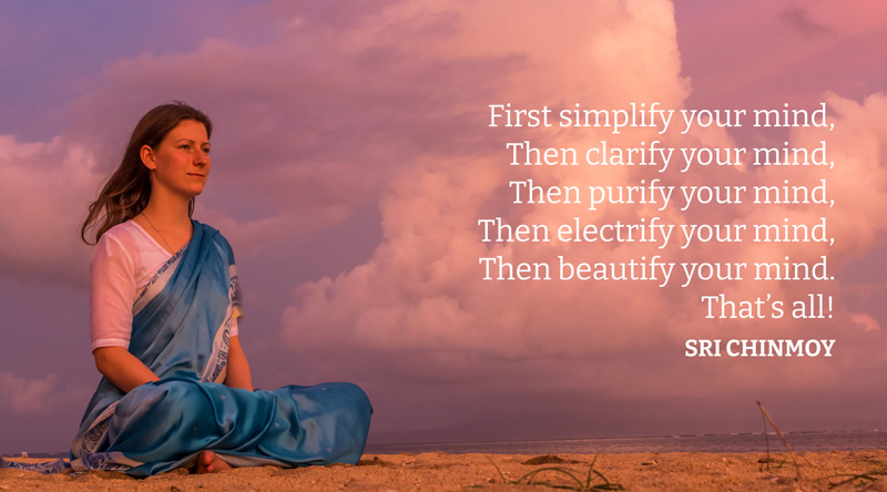 In order to purify your mind, the best thing to do is to feel every day for a few minutes during your meditation that you have no mind. Say to yourself, "I have no mind, I have no mind. What I have is the heart." Then after some time feel, "I don't have a heart. What I have is the soul." When you say, "I have the soul," at that time you will be flooded with purity. But again you have to go deeper and farther by saying not only, "I have the soul," but also "I am the soul." At that time, imagine the most beautiful child you have ever seen, and feel that your soul is infinitely more beautiful than that child. The moment you can say and feel, "I am the soul," and meditate on this truth, your soul's infinite purity will enter into your heart. Then, from the heart, the infinite purity will enter into your mind. When you can truly feel that you are only the soul, the soul will purify your mind. - Sri Chinmoy