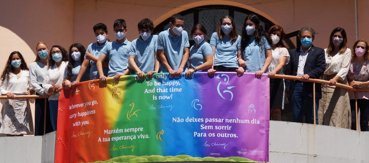In Portugal, we were energized by the international Happiness-Banners initiative, and we contacted schools, hospitals and homes for the elderly to see if they would like to have a banner. Five pioneer Portuguese primary and secondary schools have chosen to participate in the project so far. Each institution made its own selection from a group of 27 aphorisms, and these aphorisms were printed on banners in different colors of the rainbow.