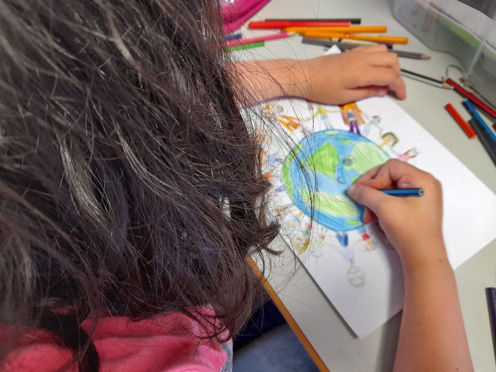 It is very beautiful to see how these initiatives are making children feel part of a global family, fulfilling the principles of the UN in such a natural and simple way. Inspired by the phrases of hope on the banners that their schools received, they took action, drawing pictures with messages to make another human being happy.