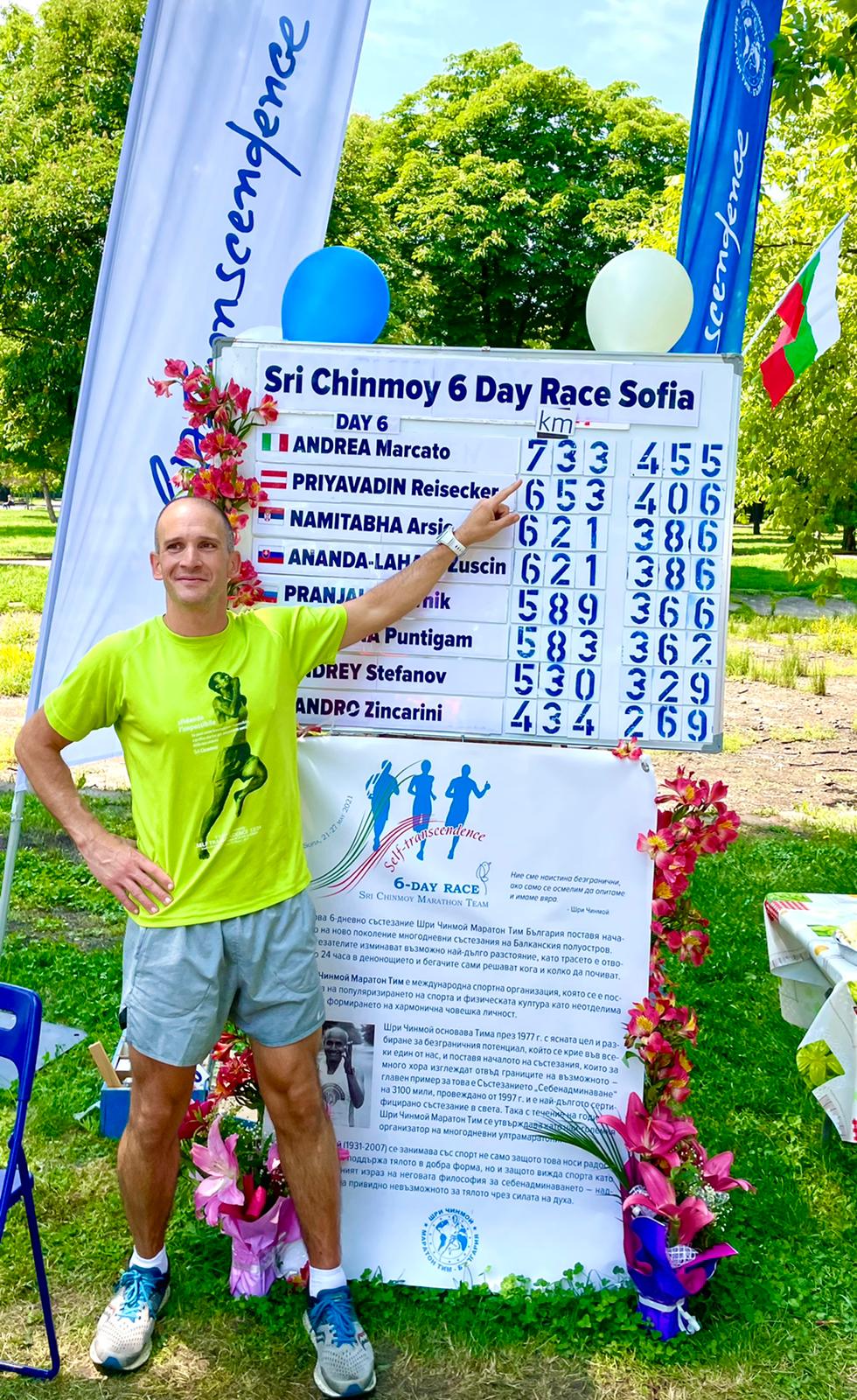 On Sunday 17 October, Andrea Marcato won the 2021 Sri Chinmoy Self-Transcendence 3,100 Mile in a superb time of 42 days plus 17 hours 38 minutes and 38 seconds. The time placed him as the third fastest runner of all time. Even more remarkable is how during the race he was able to increase his daily mileage totals towards the end of the race - running 30 consecutive days of 70+ miles.