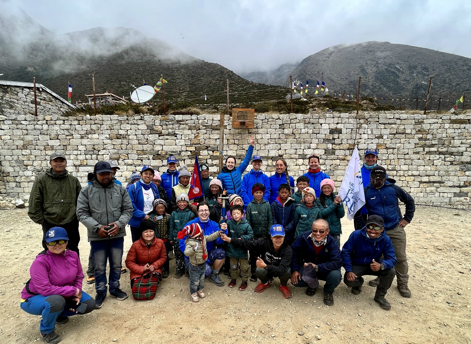 The Peace Run team visiting school children in Namche Bazaar.
